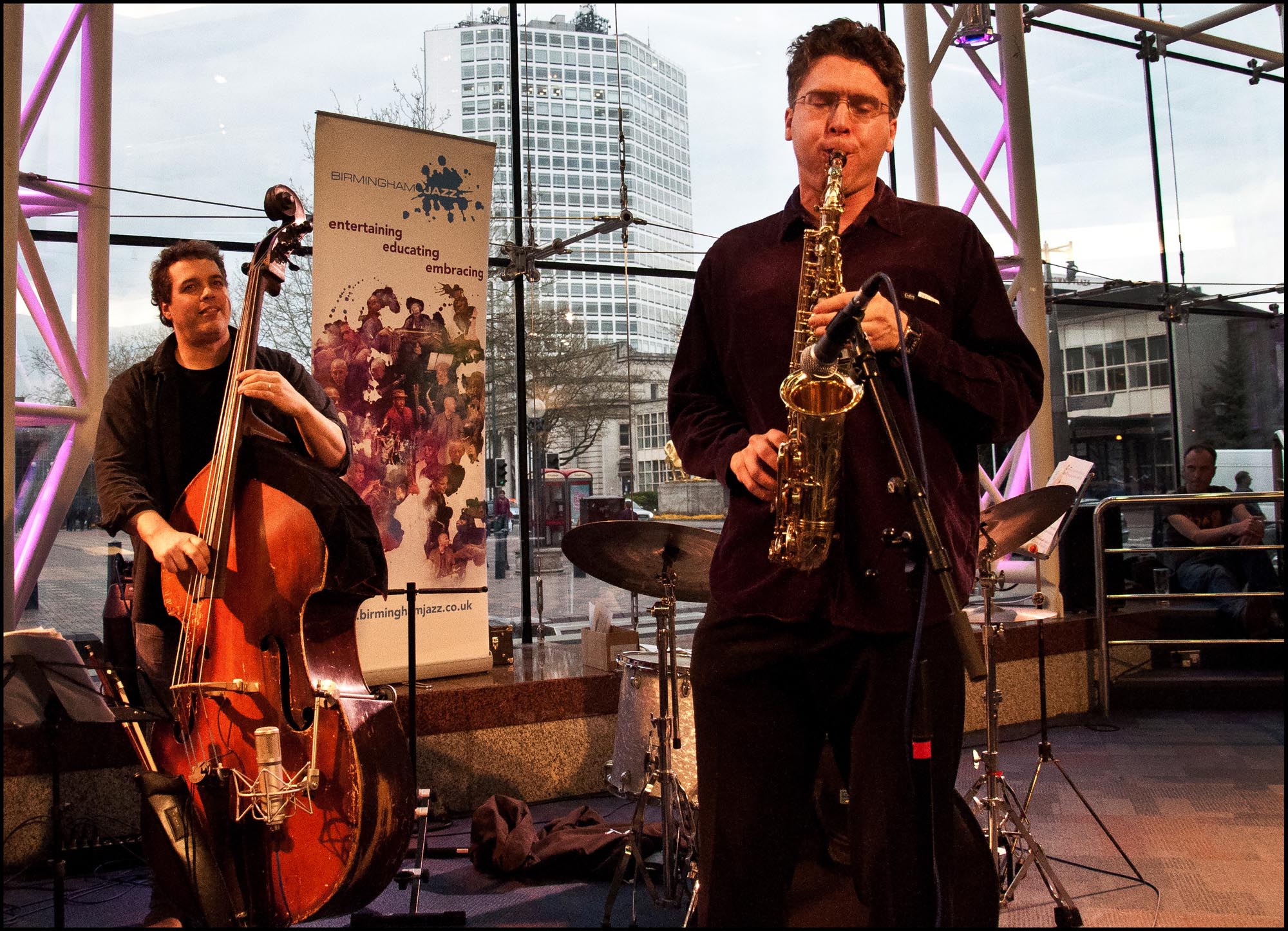 Sam is a multi-wind instrumentalist specialising in saxophones (alto, tenor, soprano) and flutes. Starting music at 6 and completing all the ABRSM classical grade exams on his instruments, at 14 he featured as soloist performing a Mozart flute concerto with the symphony orchestra of his region. His involvement with jazz started at 12 following being given some swing and modern jazz records to listen to: Benny Goodman, Miles Davis, and subsequently he became interested in Charlie Parker and John Coltrane amongst others.